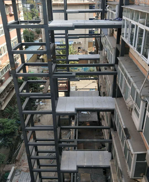 宇通花園位于河南省鄭州市管城區(qū)鄭汴路42號,該小區(qū)屬于老舊住宅小區(qū)加裝電梯。原來走廊設(shè)計現(xiàn)澆混凝土,但是重量重,每層面積小,施工難度大,造價高。新型蒸壓輕質(zhì)加氣混凝土樓板,具有重量輕、定制生產(chǎn)、施工方便快捷。該電梯走廊采用的是厚100mm、長2000mm、寬600mm的加氣混凝土樓板,該規(guī)格樓板的荷載為3600N/㎡,完全滿足加氣樓板的荷載要求。